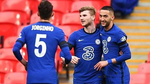 Abraham đưa bóng vào lưới Man City nhưng rất tiếc, người đồng đội Werner rơi vào thế việt vị. Nhưng những nỗ lực của Chelsea đã được đền đáp. Werner có cơ hội chuộc lỗi với pha căng ngang từ cánh phải vào cho đồng đội phía trong. Marcos Alonso xuất hiện đúng chỗ ghi bàn ấn định tỷ số 2-1 vào phút bù giờ của hiệp 2.