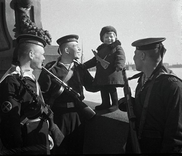 Điều ít người để ý là Hạm đội biển Baltic có tới hơn 110 nghìn thủy thủ hoạt động chiến đấu trên mặt đất. Hạm đội đã từng thực hiện 24 cuộc tấn công đổ bộ, tiêu diệt 1.205 chiến hạm địch và bắn rơi 2.418 máy bay địch. Có tới 137 thủy thủ của Hạm đội được phong danh hiệu Anh hùng của Liên Xô. Ảnh: các binh sĩ thuộc Tiểu đoàn xe tăng, Lữ đoàn Cơ giới của Hạm đội Baltic.