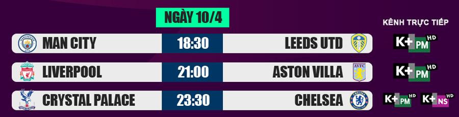 Tối và đêm nay, giải Ngoại hạng Anh sẽ diễn ra 3 cặp đấu thuộc vòng 31. Ba CLB đang tham dự đấu trường Champions League là Man City, Liverpool và Chelsea đều ra sân. Trong đó, cặp đấu giữa Liverpool và Aston Villa nhận được sự quan tâm lớn nhất.