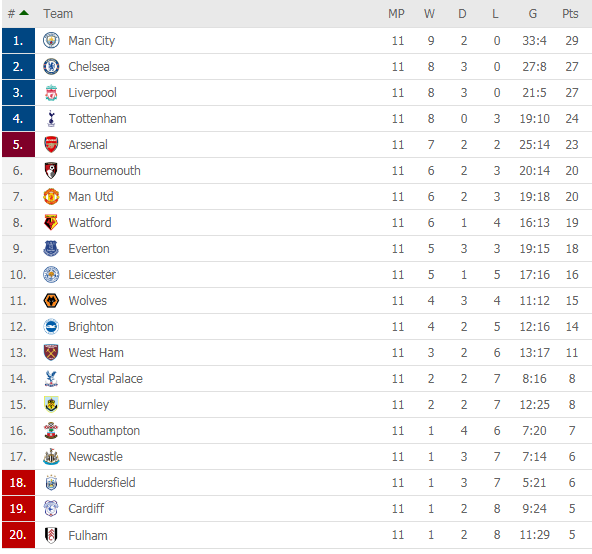 Trong khi Man City đang dẫn đầu bảng Ngoại hạng Anh thì Man Utd chỉ đứng thứ 7 với 9 điểm ít hơn. Khả năng đội bóng của Mourinho cạnh tranh ngôi vô địch vào cuối mùa giải gần như không có.