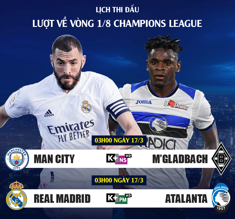 Lịch trực tiếp Champions League: Real và Man City chờ lấy vé ảnh 1Ở lượt đi, Man City đã dễ dàng đánh bại M'Gladbach với tỉ số 2-0