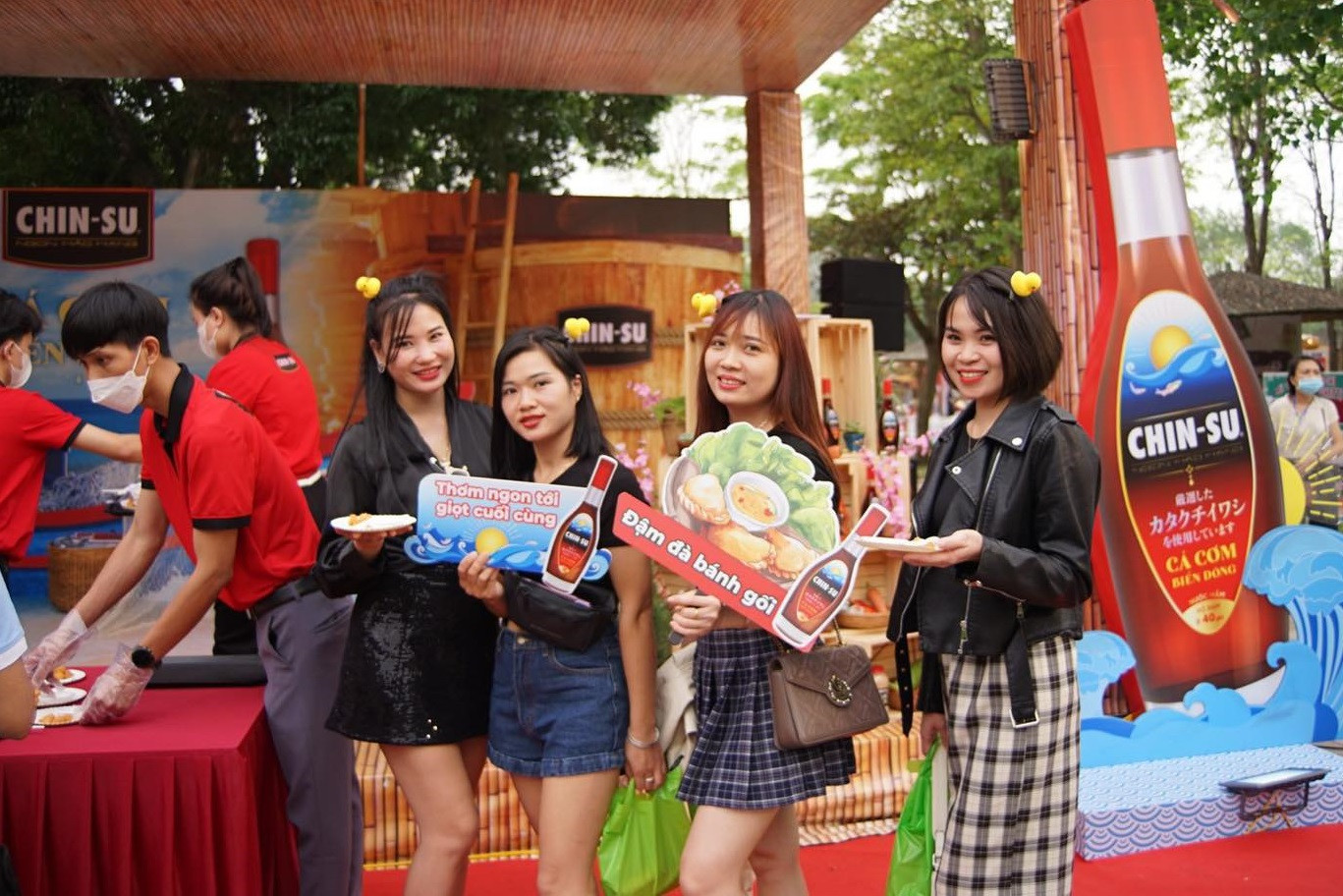 | Giới trẻ hào hứng trải nghiệm các món ngon cùng tương ớt và nước mắm Chin-su. |