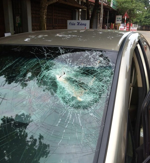 Cụ thể, khi chiếc xe máy đến gần sát ô tô, đối tượng ngồi sau đã nhổm lên ném mạnh nguyên cả một viên gạch thẳng vào kính chắn gió ô tô của anh Lam. Viên gạch đã khiến tấm kính chắn gió (phía người lái ngồi) vỡ rạn trên diện rộng, rất may kính không vỡ vụn, anh Lam kịp lái xe tấp vào lề đường và không bị thương.