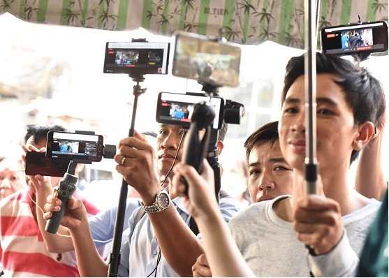 Số đông chuẩn bị đồ nghề chuyên nghiệp như: USB phát 3G, sạc dự phòng, gậy tự sướng... để quay phim, phát trực tiếp lên mạng xã hội.
