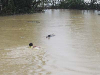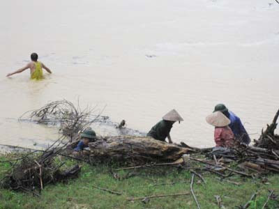 TPO - Ngày 15 - 10, lũ ống, lũ quét tràn về, gây ngập tại nhiều địa bàn huyện Hương Sơn (Hà Tĩnh). Mực nước sông Ngàn Phố cuồn cuộn đổ từ thượng nguồn về. Thế nhưng, bất chấp lũ lớn, nhiều người dân vẫn liều mình vớt củi.