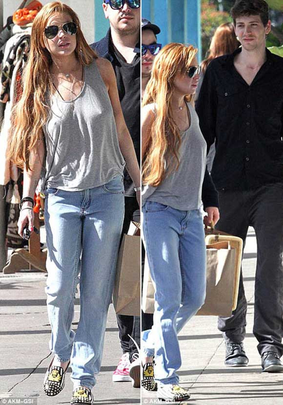 Trong suốt buổi mua sắm hôm qua, Lindsay luôn được bạn trai mới theo sát, đây cũng là lần đầu tiên cặp đôi công khai trước ống kính phóng viên. Avi là thành viên của nhóm nhạc Anh City of the Sun.