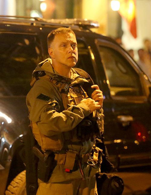 Cùng với lính bắn tỉa bảo vệ ở vòng ngoài thì có cả lực lượng đặc nhiệm được trang bị áp giáp và nhiều vũ khí. Có ít nhất 2 lính đặc nhiệm chốt cách quán bún chả khoảng 5 m, liên tục hướng mắt về phía người dân và các tòa nhà cao tầng để quan sát, phát hiện những mối nguy hiểm.