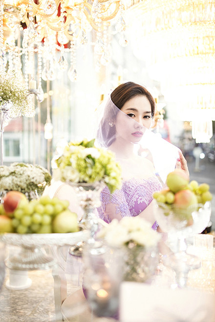 Tông màu tím pastel đang gây sốt năm nay khiến Linh Chi dịu dàng hơn so với hình ảnh sexy thường ngày.