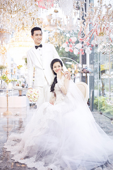 Nhưng trong bộ ảnh cưới mới, cô vào vai cô dâu hiền e ấp bên Võ Cảnh.