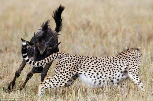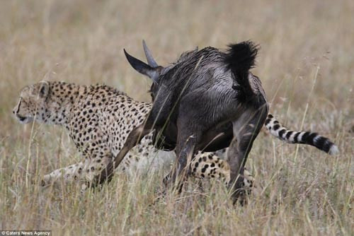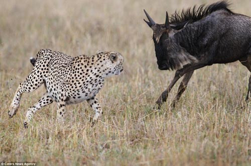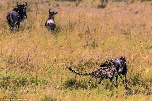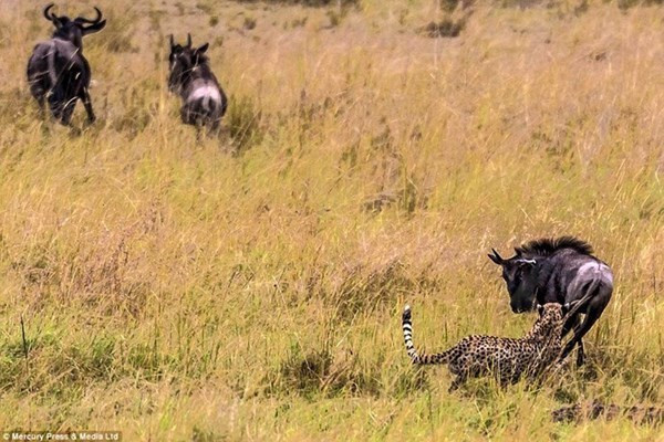Cuộc chiến giữa linh dương đầu bò và báo đốm đã lọt vào ống kính của nhiếp ảnh gia Manoj Shah khi ông tới khu bảo tồn quốc gia Masai Mara, Kenya.