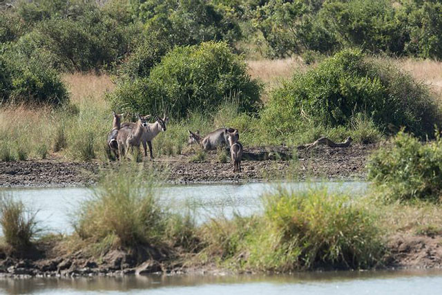 Trước đó, khi đang cùng đồng loại uống nước bên cái hồ sắp cạn, chú linh dương Waterbuck kém may mắn này đã bị kẻ săn mồi bắt được.