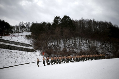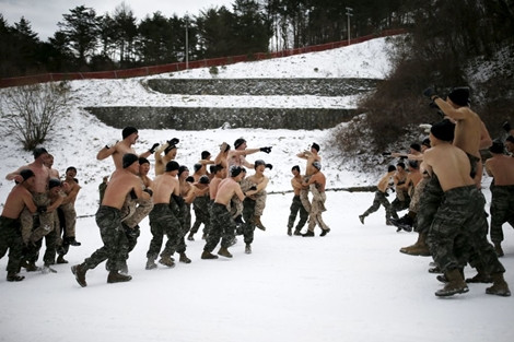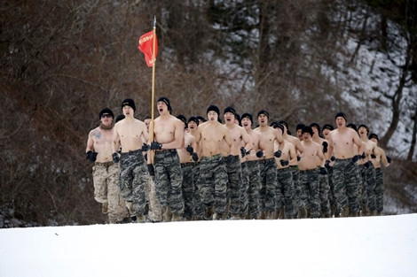 Cởi trần chạy bộ trong trời tuyết lạnh.