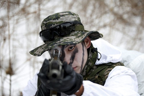 Đội hình tập trận chung của các binh sỹ Hàn Quốc và Mỹ.