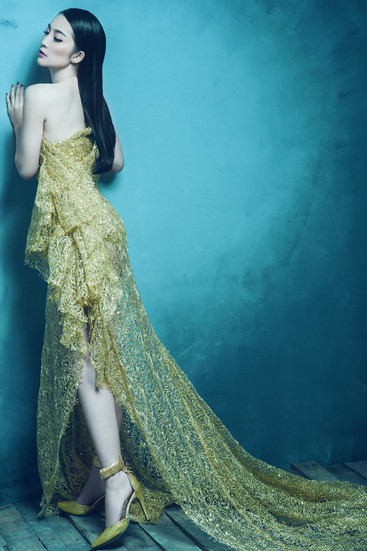 "Chim công làng múa" khoe vẻ đài các, sang trọng với những bộ váy ren đính kim tuyến nổi bật.