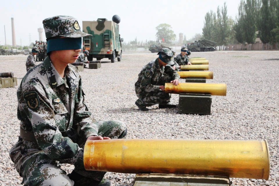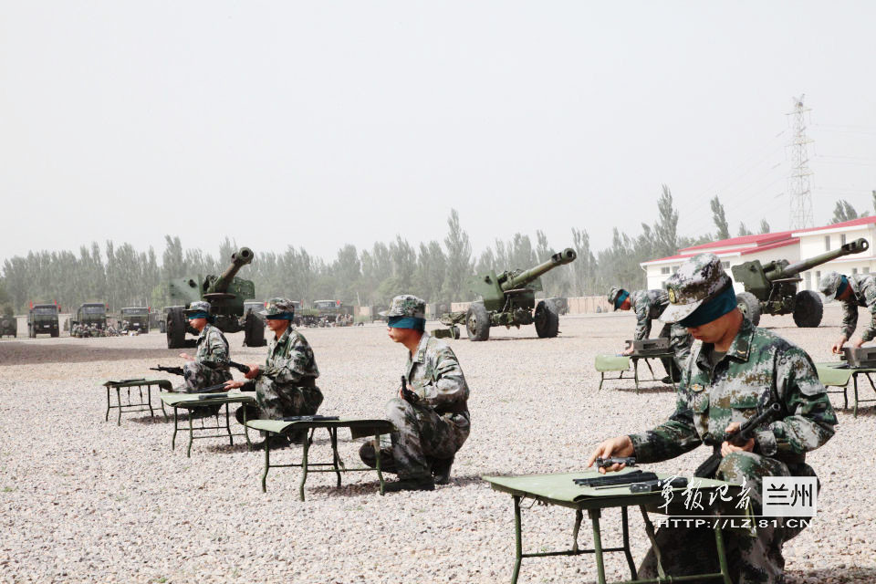 Những hình ảnh cho thấy một số binh sỹ thuộc hàng tinh nhuệ nhất lữ đoàn trình diễn khả năng tháo lắp súng, pháo và nhắm bắn mục tiêu khi đang bịt mắt.