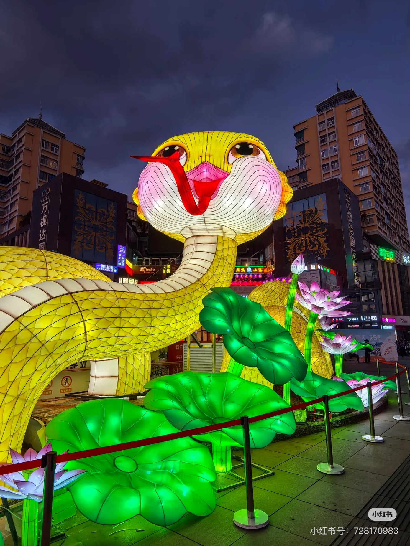 | Theo đại diện khu phố đi bộ, linh vật rắn do Cục Văn hóa và Du lịch quận Wuhua đặt tại phố Nam Bình nhân dịp chào mừng năm mới. Ảnh: Xiaohongshu |
