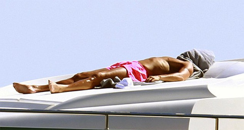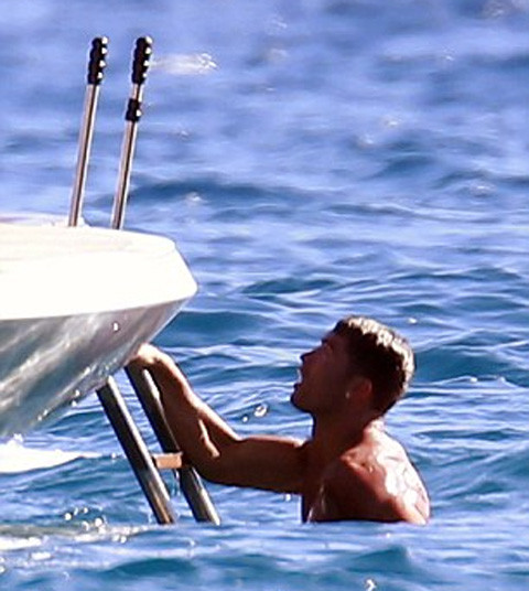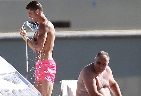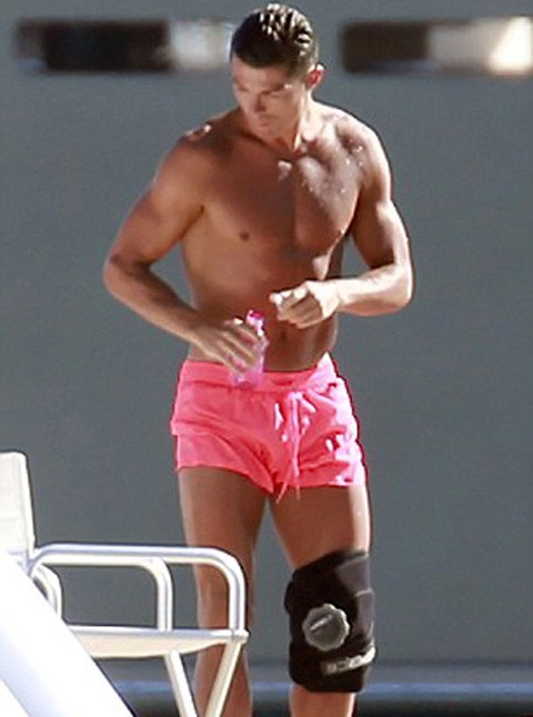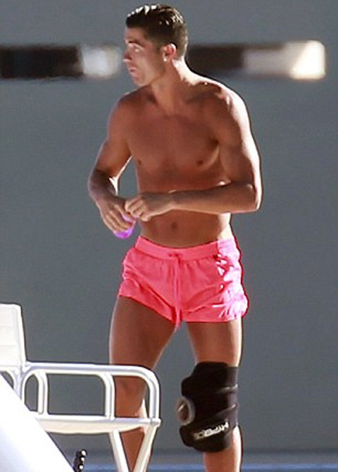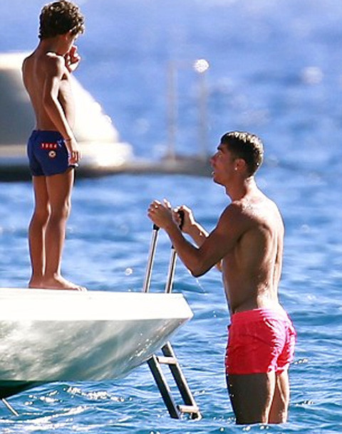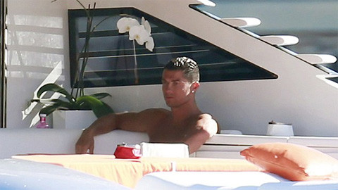 Thực ra, CR7 chỉ bó đầu gối trong một khoảng thời gian nhất định khi tắm nắng trên boong tàu, còn lúc xuống nước anh cũng tháo vòng để dễ dàng bơi lội thỏa thích hơn.