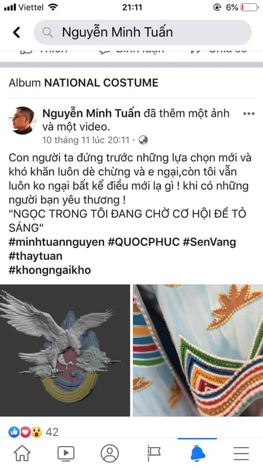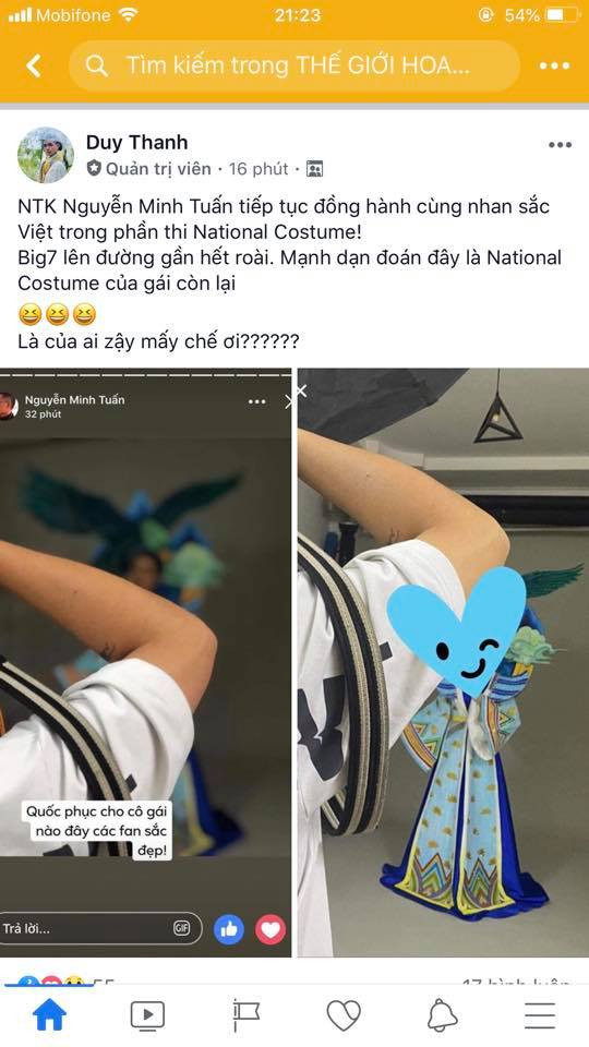 Theo như những hình ảnh hậu trường và bản vẽ được chia sẻ, có thể thấy đây là một thiết kế khá “độc-lạ” khi kết hợp mây, núi và một con đại bàng lớn đang sải cánh vào thời trang. Một thiết kế với gam màu xanh chủ đạo, vừa tươi mới lại vừa trang nhã, tinh tế. Tổng thể bộ quốc phục là sự mềm mại trong những tà áo hòa quyện cùng sự mạnh mẽ nơi cầu vai phía sau với hình ảnh quyền lực của đại bảng sải cánh giữa đất trời, mây núi. Sự kết hợp độc đáo này tạo nên sức cuốn hút đặc biệt cho bộ quốc phục. Thiết kế này hiện đang nhận được sự chú ý và bàn luận sôi nổi của cộng đồng fan sắc đẹp bởi ai cũng muốn được hiểu rõ hơn về ý nghĩa phía sau của nó. Đặc biệt, sau khi ghép nối những thông tin từng được NTK Nguyễn Minh Tuấn úp mở trên trang cá nhân, fan “mạnh dạn” đoán đây chính là quốc phục dành cho cô gái cuối cùng trong team Big7 Á hậu Thúy An. Từ bức ảnh hậu trường, có thể thấy bộ quốc phục “mang dậm nét dân gian Việt Nam” nhưng vô cùng lạ mắt, mới mẻ khiến háo hức ngóng đợi hình ảnh Á hậu Thúy An khoác lên mình bộ quốc phục đặc biệt hoành tráng này.