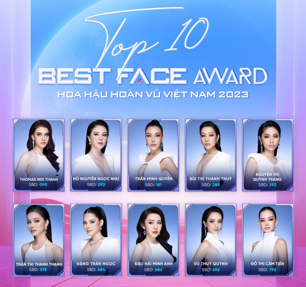 Top 10 Best Face của Hoa Hậu Hoàn Vũ Việt Nam 2023 sẽ được Hội đồng chuyên môn tiếp tục đánh giá và lựa chọn. Người đẹp có số điểm cao nhất sẽ chính thức nhận giải thưởng Best Face (Gương mặt Đẹp nhất).