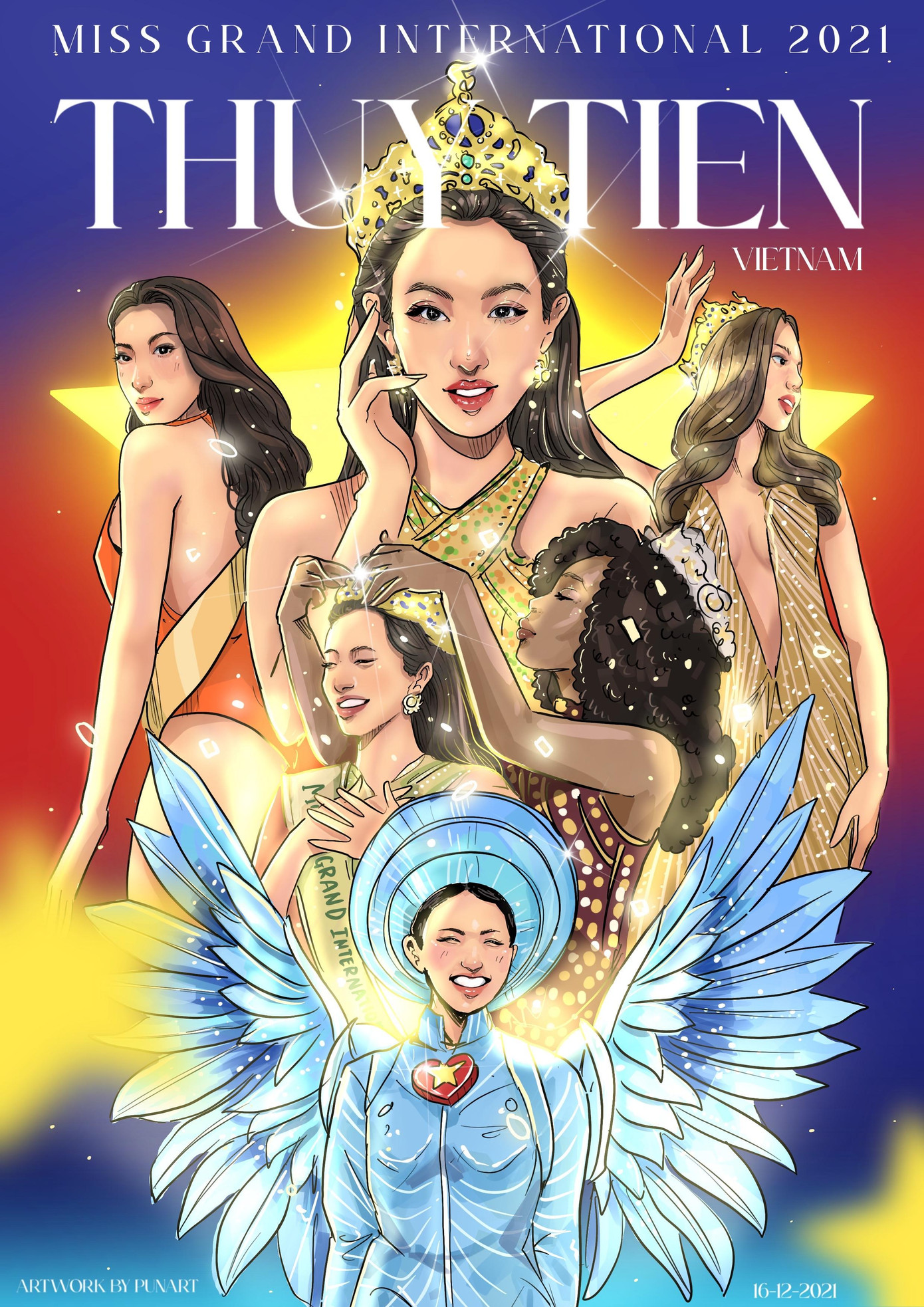 Ở bản vẽ Khoảnh khắc tuyệt vời, tác giả thể hiện sự tự hào khi đại diện Việt Nam đã có một chiến thắng đầy thuyết phục sau một hành trình dài đầy khó khăn. Bên cạnh đó, bản vẽ Thiên thần tung cánh được kết hợp bởi nét vẽ chibi, tương ứng với nét tính cách gần gũi của Hoa hậu Thùy Tiên và thể hiện sự cảm kích trước bộ Quốc phục Blue Angel.