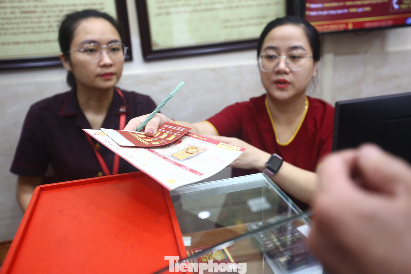 Tương tự tại cửa hàng vàng trên phố Cầu Giấy (quận Cầu Giấy, Hà Nội), hàng chục người có mặt từ 5h sáng xếp hàng.