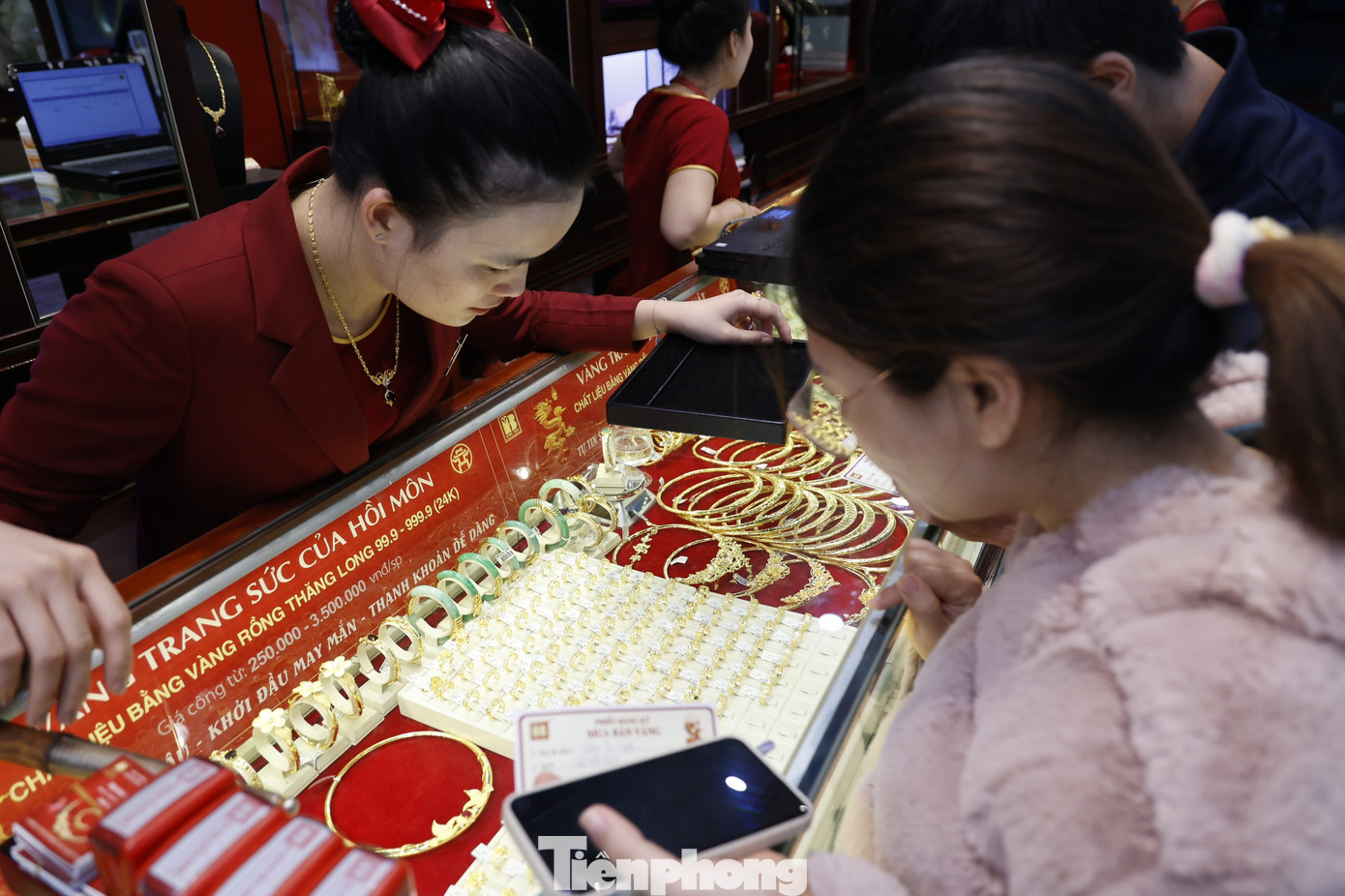 Nhân viên các cửa hàng vàng có mặt từ rất sớm để chuẩn bị phục vụ khách hàng.