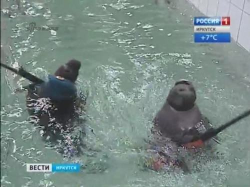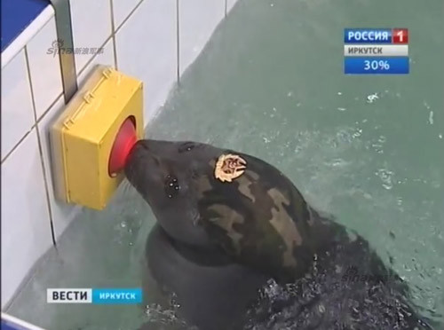 Bên cạnh đó, hai chú hải cẩu này còn có thể bắn súng trúng bia, có thể mang súng xếp hàng, có thể chào kiểu nhà binh hoặc dùng miệng nhấn nút báo động… Dưới đây là một số hình ảnh đáng yêu của hai chiến binh hải cẩu này: