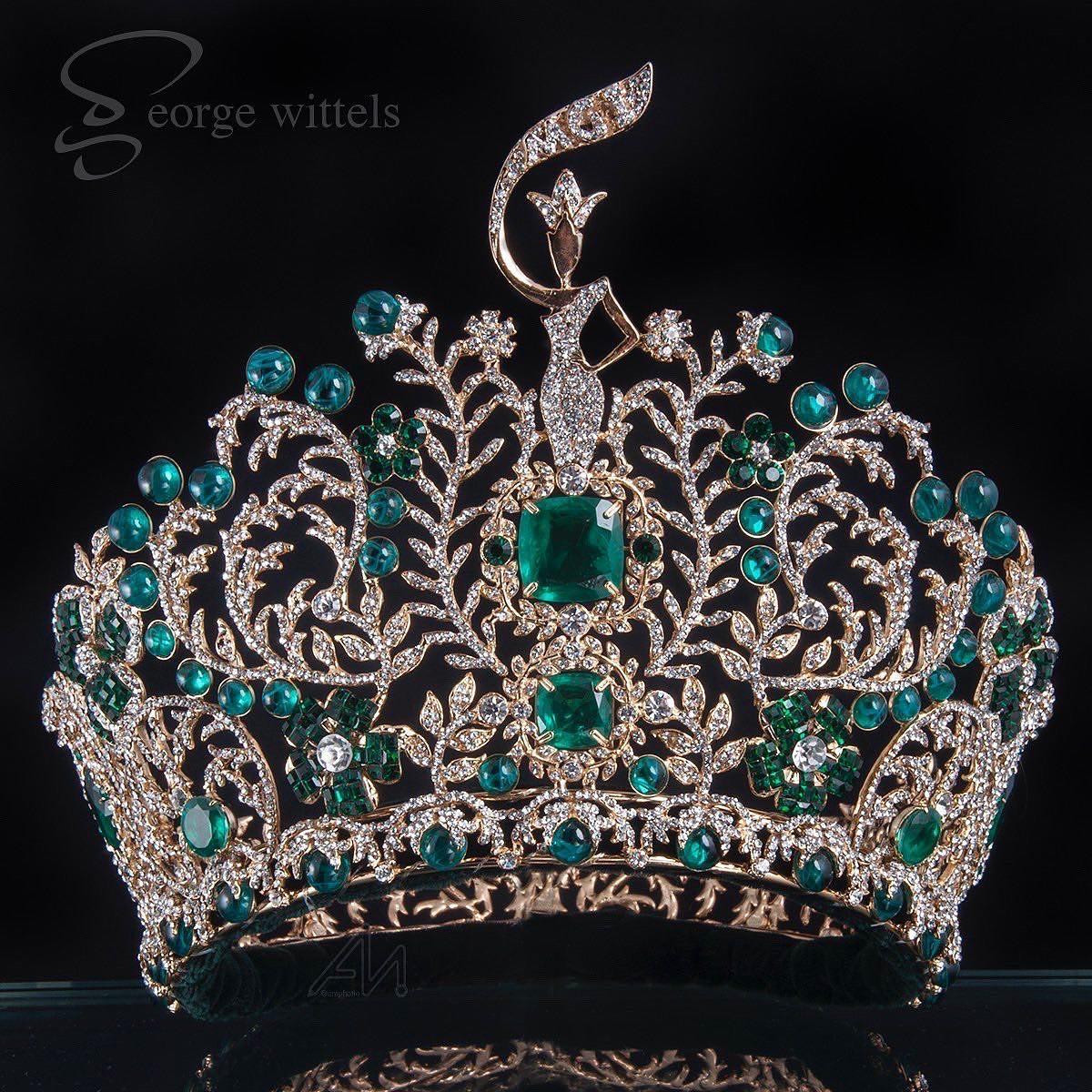 Chiếc vương miện với cấu trúc bên trong được làm bằng đồng thau và bên ngoài được trang trí bằng vàng 18K với 3 carat kim cương 100% với hình dáng như bó hoa bao gồm 7 mảnh nhỏ bao lấy viên kim cương 21 carat. Hơn nữa, chiếc vương miện này được trang trí bằng ngọc lục bảo ở cả bảy mặt và miếng ngọc lục bảo lớn nhất có tông màu xanh lục.