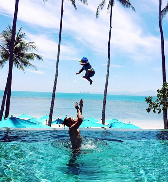 Carroll tung con trai Arlo mới hơn một tuổi khi chơi ở bể bơi khách sạn. Đây là con chung của tiền đạo này với Mucklow, sau hai con có được với mối quan hệ trước.