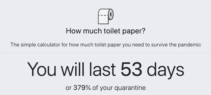 Trong bối cảnh nhiều siêu thị và cửa hàng trực tuyến tại châu Âu hết giấy vệ sinh do người dân đổ xô tích trữ nhu yếu phẩm khi Covid-19 bùng phát, một trang web với tên gọi “How Much Toilet Paper?” đã được lập ra để mọi người có thể mua đủ giấy vệ sinh mình cần mà vẫn còn hàng cho người mua khác.