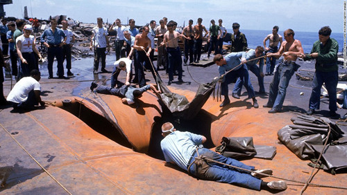 Năm 1967, một tai nạn cháy nổ kinh hoàng đã xảy ra trên tàu sân bay USS Forrestal. Một sự cố về điện đã vô tình kích hoạt quả tên lửa Zuni trong ống phóng, khiến nó phát nổ ngay trên tàu. Ngọn lửa lan sang một chiếc máy bay chở đầy nhiên liệu và bom đạn ở gần đó, khiến nó nổ tung gần như tức thì, và kích hoạt chuỗi phản ứng nổ liên hoàn đối với những chiếc chiến đấu cơ bên cạnh.