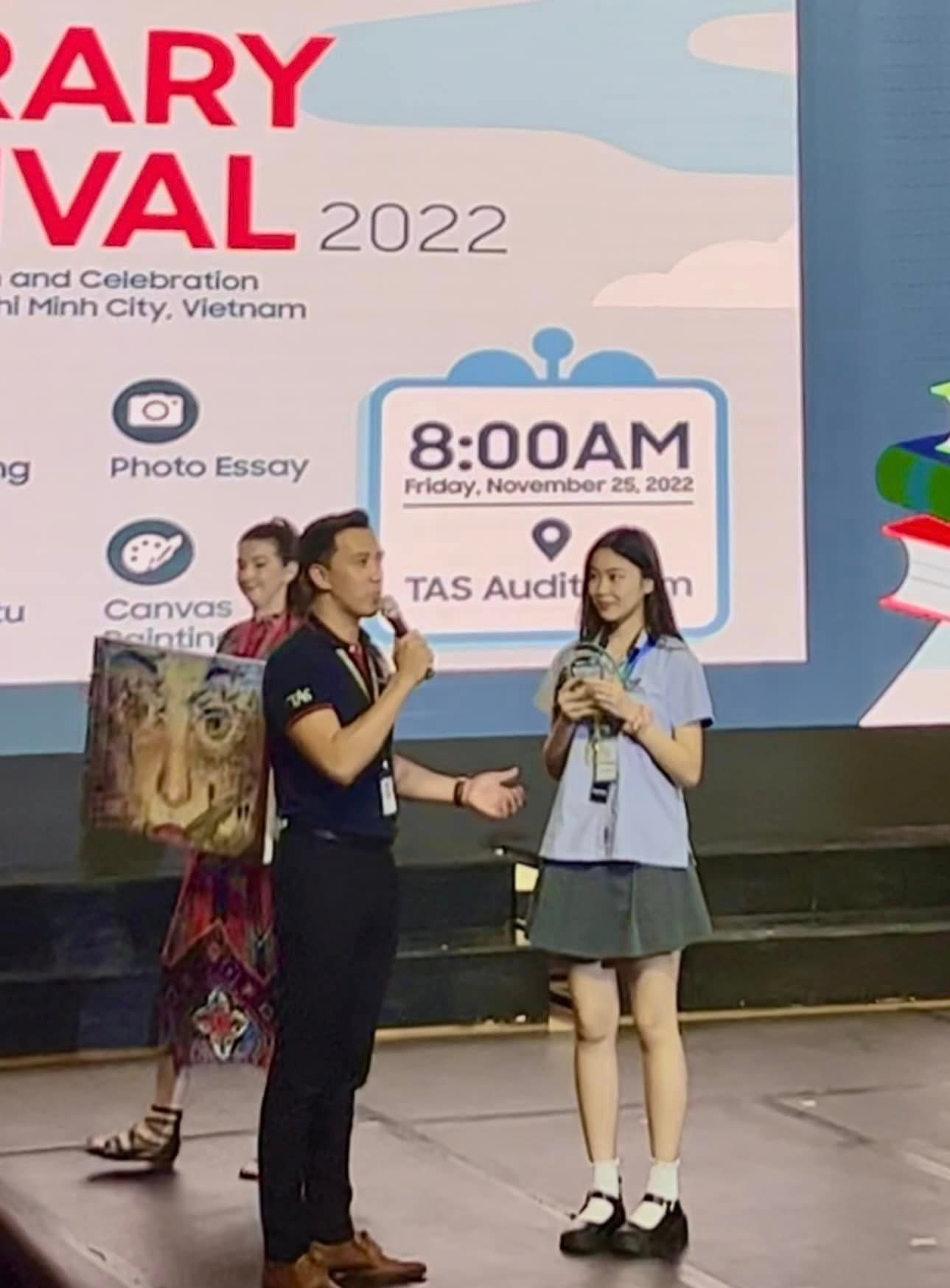 Trước đó, "Hoa hậu tương lai" nhà MC Quyền Linh từng đoạt giải Nhất cuộc thi "Vẽ tranh Canvas" do trường học tổ chức. Bên cạnh đam mê hội họa, Lọ Lem còn thích ca hát, làm MC và tham gia các hoạt động ở trường.