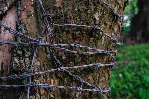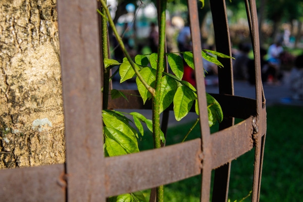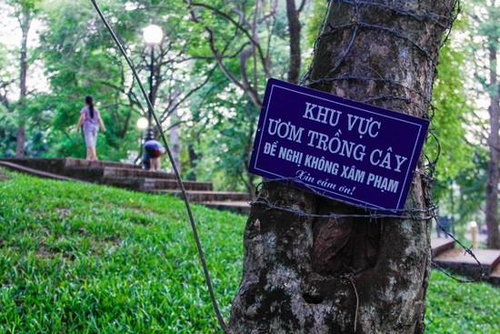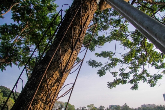 Tại Công viên Bách Thảo, việc rào cây sưa đỏ được dùng hoàn toàn bằng dây thép quấn quanh cây.