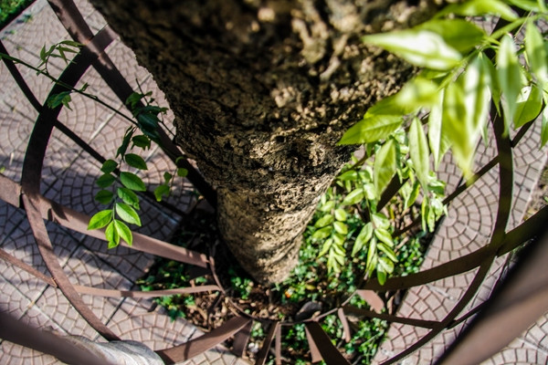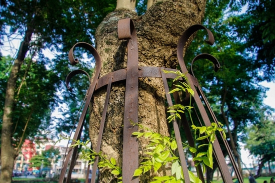Rào sắt cao khoảng 2m được rào từ gốc lên đến giữa thân cây.