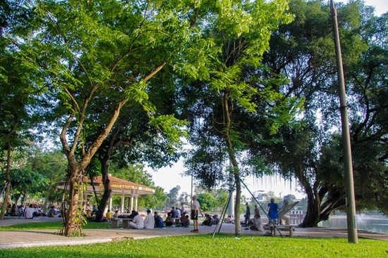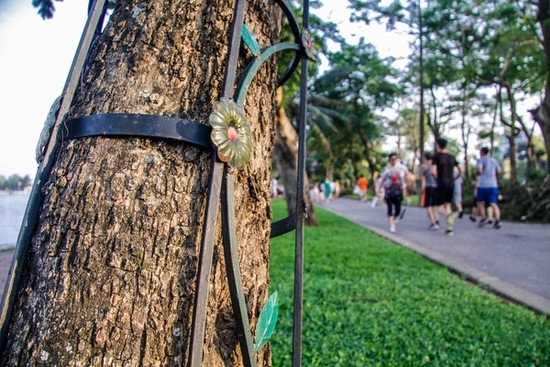 Nhiều cây sưa đỏ nằm rải rác quanh Công viên Thống Nhất (Hà Nội) được bảo vệ bằng những rào sắt có hình dạng khác nhau phù hợp với kiểu thân cây.