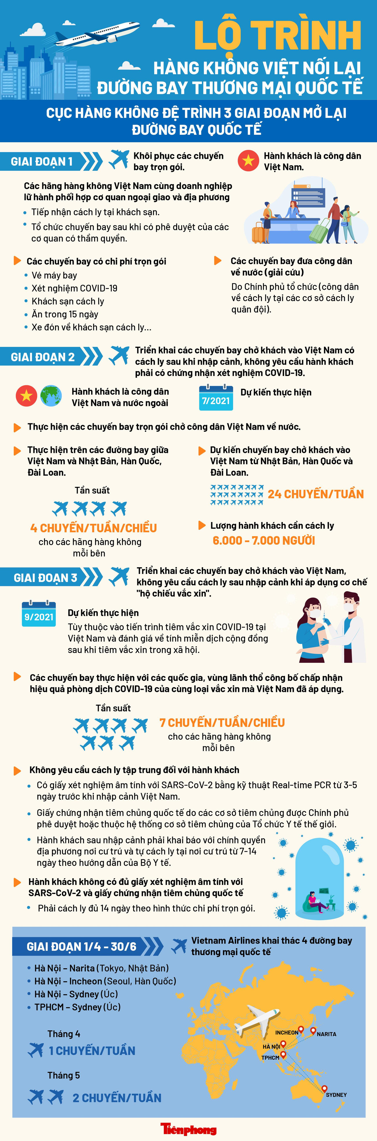 TPO - Cục Hàng không báo cáo Bộ GTVT và kiến nghị triển khai các chuyến bay quốc tế thường lệ có chở khách vào Việt Nam theo ba giai đoạn.