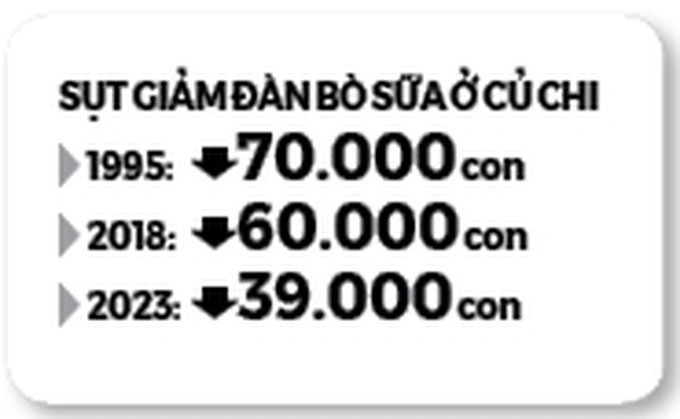 Theo UBND huyện Củ Chi, năm 1988, Củ Chi chỉ có mấy trăm con bò sữa. Nhưng 7 năm sau, huyện Củ Chi đã có khoảng 70.000 con bò. Tuy nhiên, đến năm 2018, đàn bò sữa bắt đầu giảm sút chỉ còn khoảng 60.000 con, với 8.500 hộ nuôi. Và đến năm 2023, huyện này còn 39.000 con bò sữa.