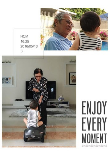 Thu Minh chia sẻ hình ảnh bé Gấu quấn quýt bên ông bà ngoại kèm lời dạy con trai phải yêu thương ông bà. Ảnh: FBNV.