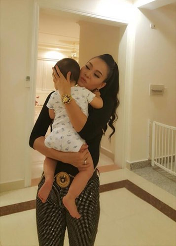 Vì muốn con trai có cuộc sống bình yên, nữ ca sĩ Thu Minh kiên quyết không công khai hình ảnh cận mặt nhóc tì của mình. Ảnh: FBNV.