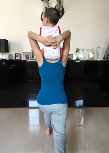 Cho đến nay, trên trang cá nhân, Thu Minh chỉ chia sẻ những khoảnh khắc chụp con trai từ phía sau. Ảnh: FBNV.
