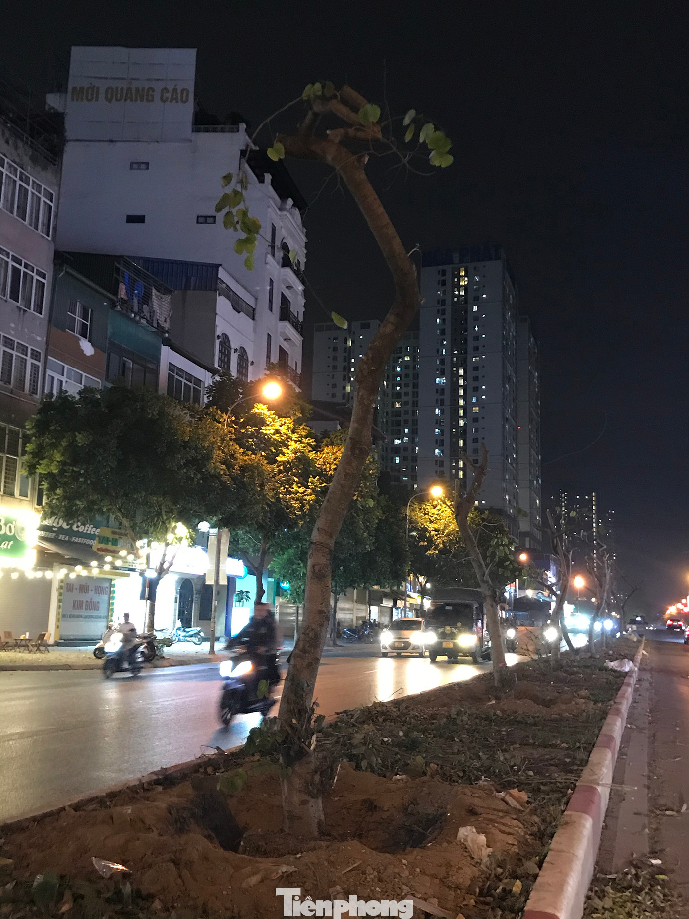 | Một số người dân rất bất ngờ khi hàng cây mới mấy ngày trước còn xanh ngát, nở nhiều hoa, bỗng chốc bị cắt cụt trông như những cây gỗ. Ảnh: Trường Phong. |