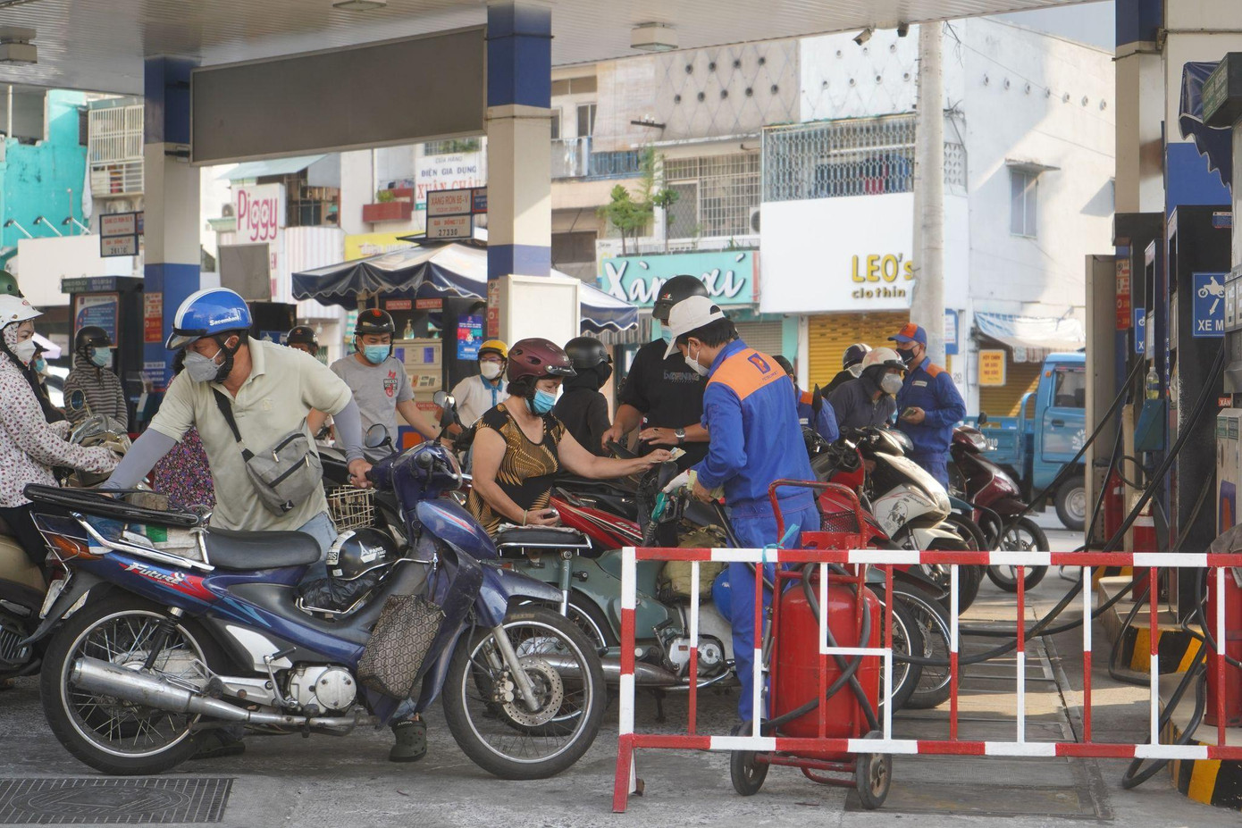 | Tại TPHCM vào sáng 11/3, nhiều cửa hàng xăng dầu ở khu vực Quận 3, Quận 5, Quận 10,… tấp nập khách. Nhân viên cây xăng làm việc không ngừng nghỉ để phục vụ khách. |