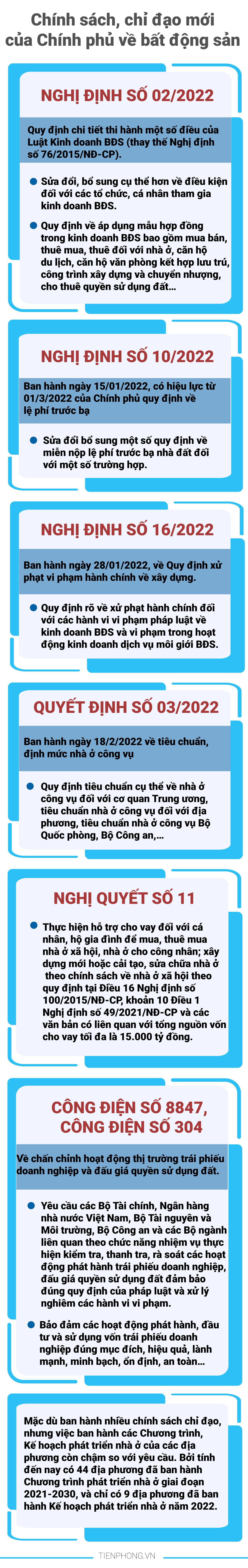 TPO - Báo cáo thị trường bất động sản (BĐS) Quý I/2022, Bộ Xây dựng cho biết, từ đầu năm đến nay, Chính phủ và Thủ tướng Chính phủ đã ban hành nhiều văn bản có tác động đến thị trường BĐS.