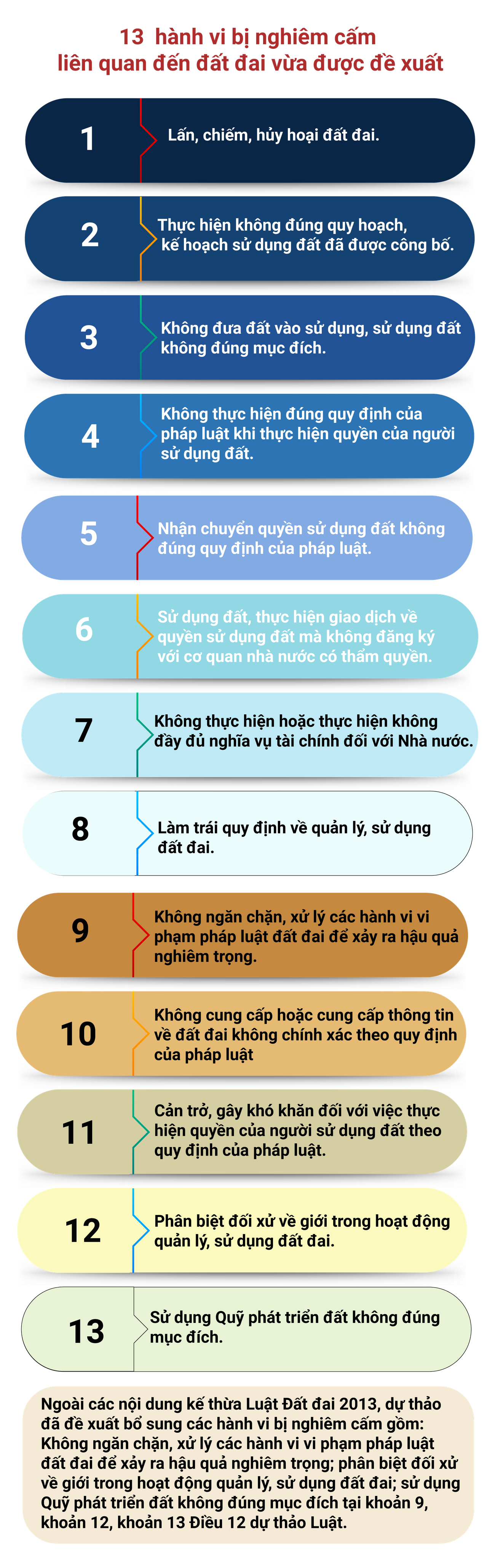 TPO - Tại dự thảo Luật Đất đai (sửa đổi), Bộ Tài nguyên và Môi trường đã đề xuất 13 hành vi bị nghiêm cấm liên quan đến lĩnh vực đất đai.