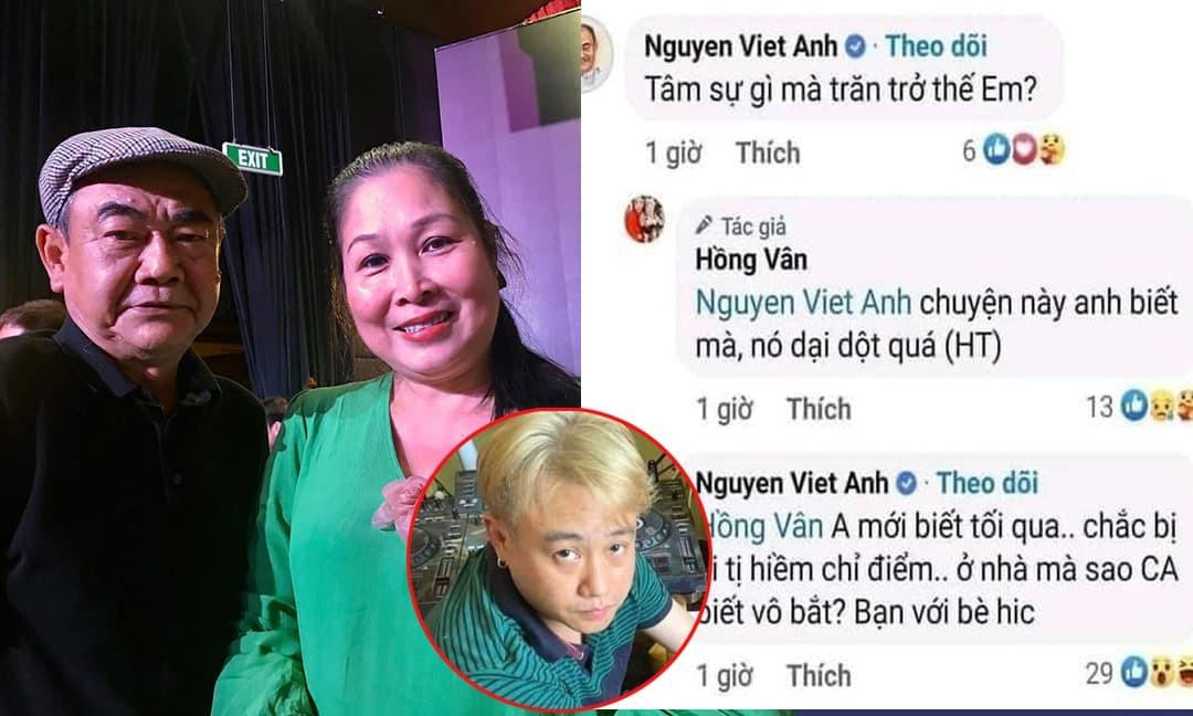 Dưới bài đăng, NSND Việt Anh bình luận về trăn trở của nữ nghệ sĩ: "Anh mới biết tối qua, chắc bị ai tị hiềm chỉ điểm. Ở nhà mà sao công an biết vô bắt? Bạn với bè!".