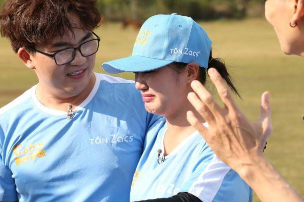 Trong thử thách đồng đội, khách mời phải thực hiện thử thách xúc đất, di chuyển qua chướng ngại vật, lấy khăn bọc đất thành những “viên đạn” để bắn rơi 10 tấm bia. Sau khi vừa hoàn thành xong thử thách, Văn Mai Hương bỗng bật khóc nức nở.
