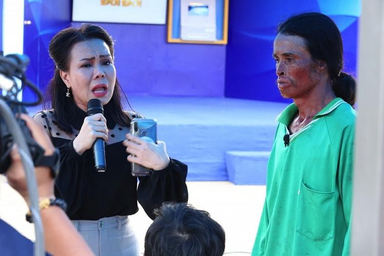 Là người “cầm trịch” của chương trình, MC Việt Hương đã không ít lần “đổ” nước mắt khi đồng hành cùng “Cơ hội đổi đời” mùa 1. Nữ MC nhiều lần giàn giụa nước mắt khi chứng kiến các hoàn cảnh éo le như hoàn cảnh của mẹ con cháu Hiền (13 tuổi, Hải Phòng).