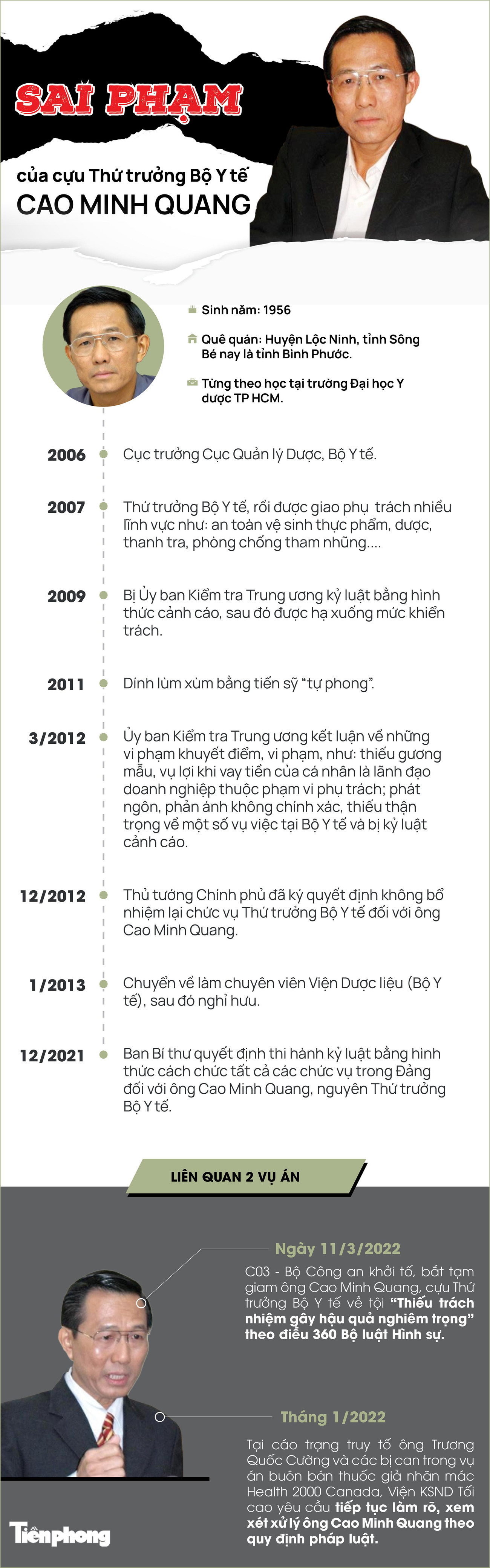 TPO - Trước khi bị khởi tố, bắt tạm giam về tội "Thiếu trách nhiệm gây hậu quả nghiêm trọng", cựu Thứ trưởng Bộ Y tế Cao Minh Quang từng nhiều lần bị kỷ luật Đảng.