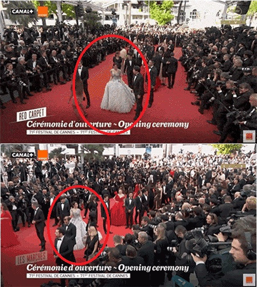 Phạm Băng Băng cũng bị vướng nghi vấn chiếm chỗ trên thảm đỏ, buộc dàn sao nước ngoài phải đi đường vòng. Tuy nhiên, ngay sau đó, nữ diễn viên được giải oan khi có hình ảnh cô bị cánh phóng viên chắn đường, không thể di chuyển lên phía trước.