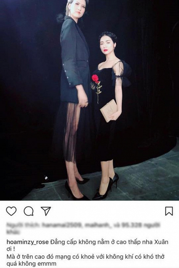 Hòa Minzy hài hước ví von khi đứng cạnh người mẫu Hồng Xuân.